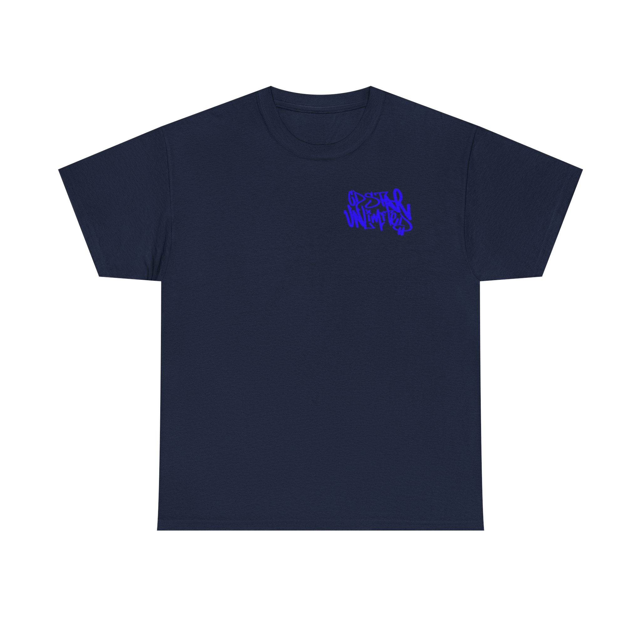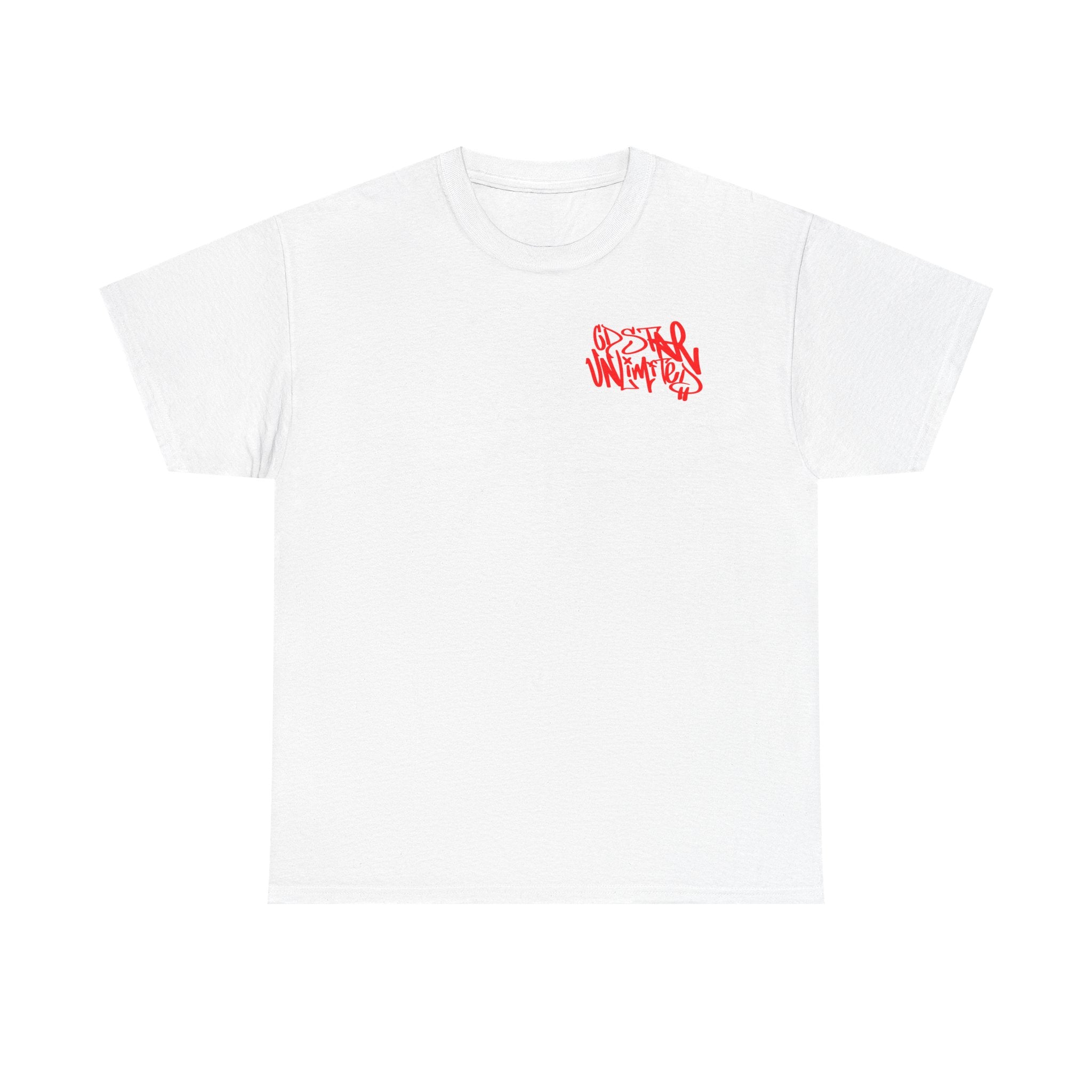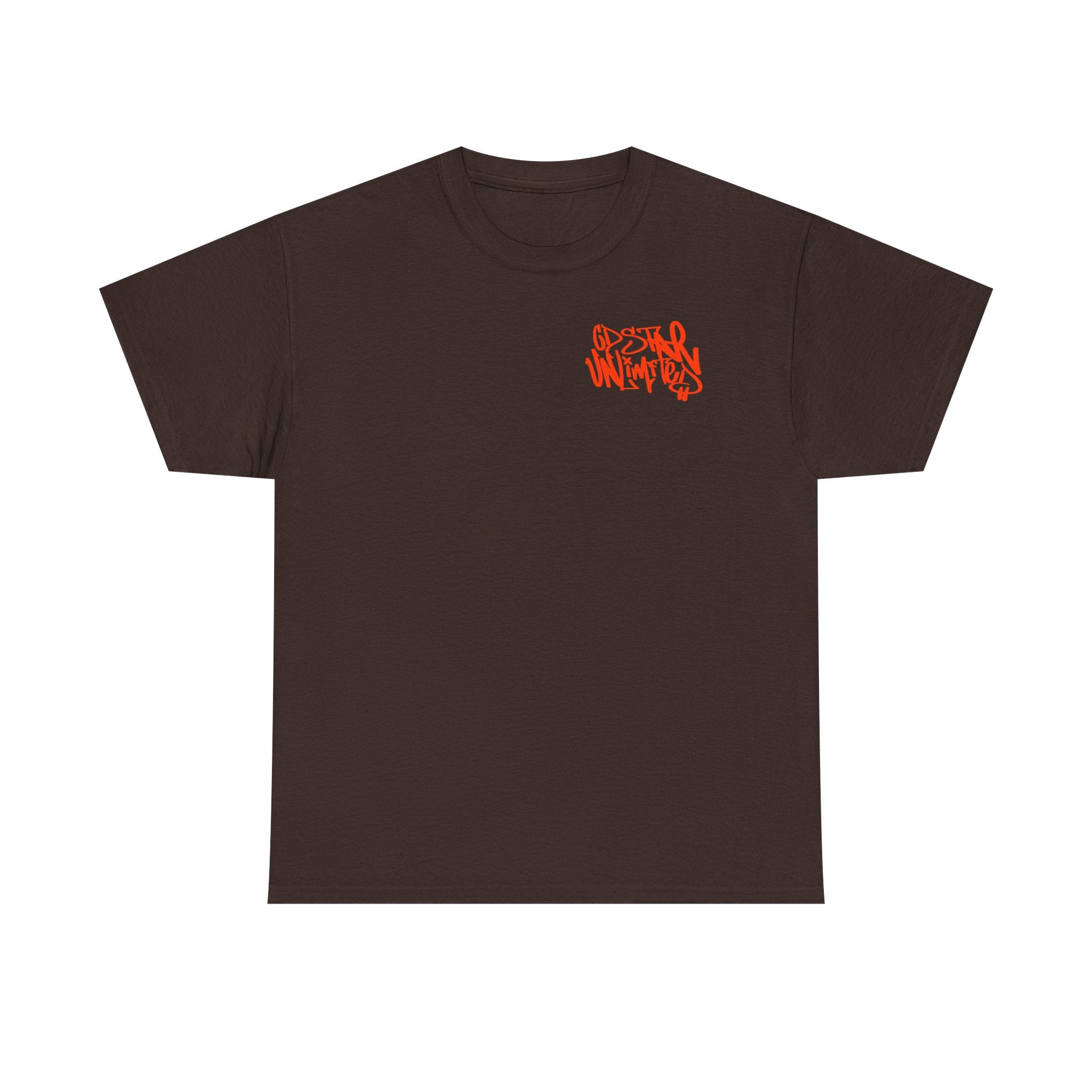 Heavy tee featuring Laroi Wright's custom logo design, in his unique hand-style, on left breast.