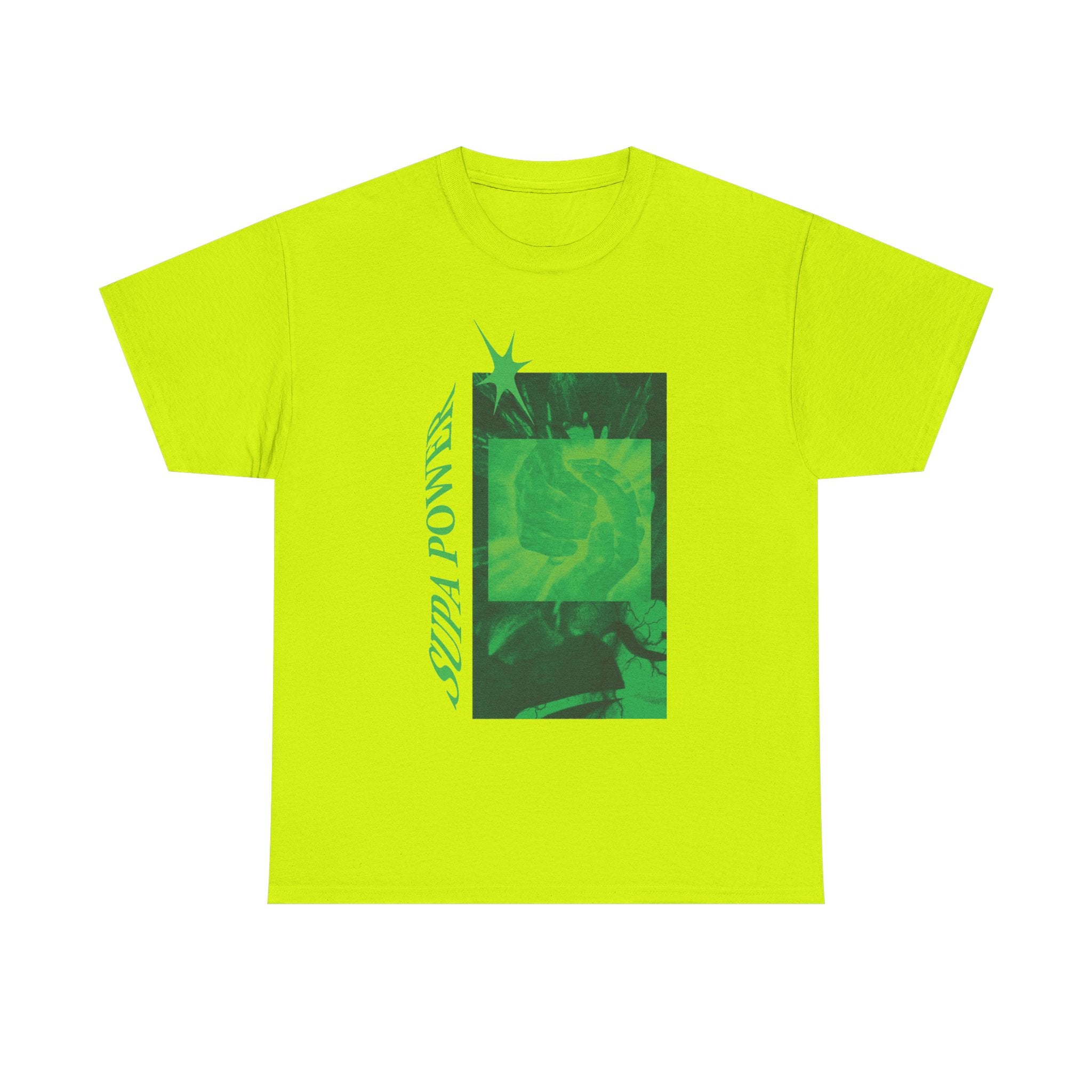 - 100% Cotton tee featuring custom "SUPA POWER" print on center front in various colorways.